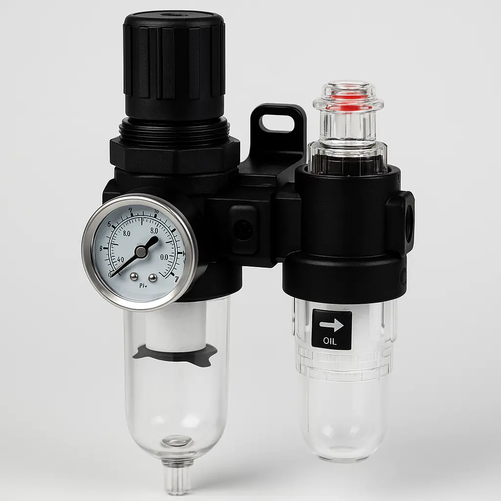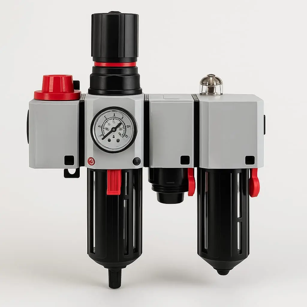 Una unidad de mantenimiento neumática es un conjunto compacto diseñado para la preparación del aire comprimido en sistemas industriales. Estos módulos integran funciones esenciales como filtrado, regulación de presión y lubricación, garantizando un flujo de aire limpio, estable y apto para proteger válvulas, cilindros y otros componentes neumáticos.